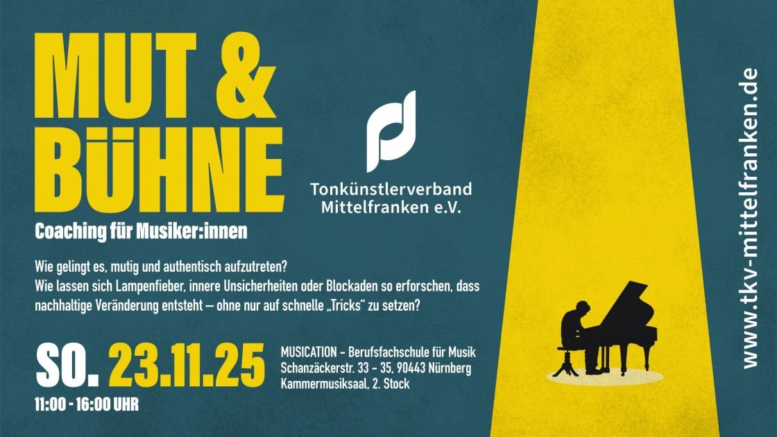 Mut & Bühne ist ein praxisorientiertes Coaching-Angebot für Musiker:innen, Musikpädagog:innen, Studierende, Schüler:innen, Ensembles oder Bands, die ihre Bühnenpräsenz stärken, ihre inneren Ressourcen entwickeln und ihren künstlerischen Ausdruck vertiefen möchten.